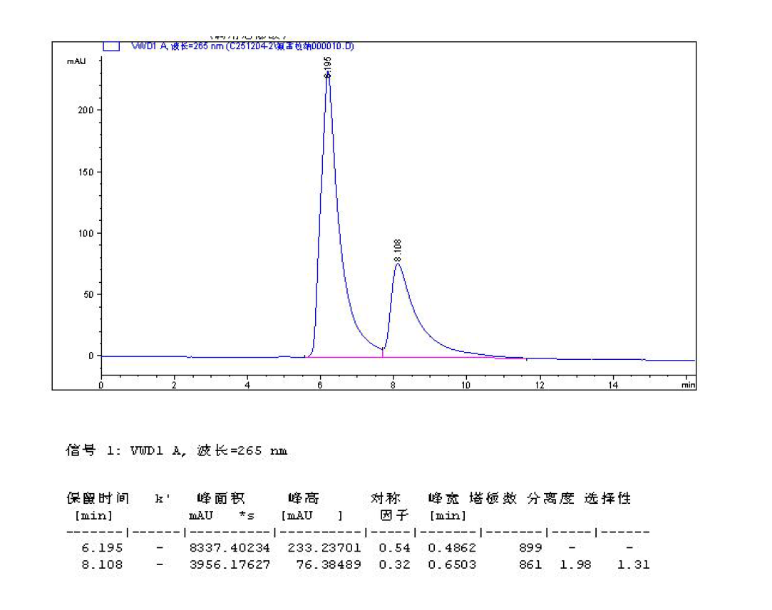 色谱柱:Chiral ND(2) 5μ 250*4.6mm( 货号:FMG-AC5-A01-NFC) 流动相及色谱条件:咨询